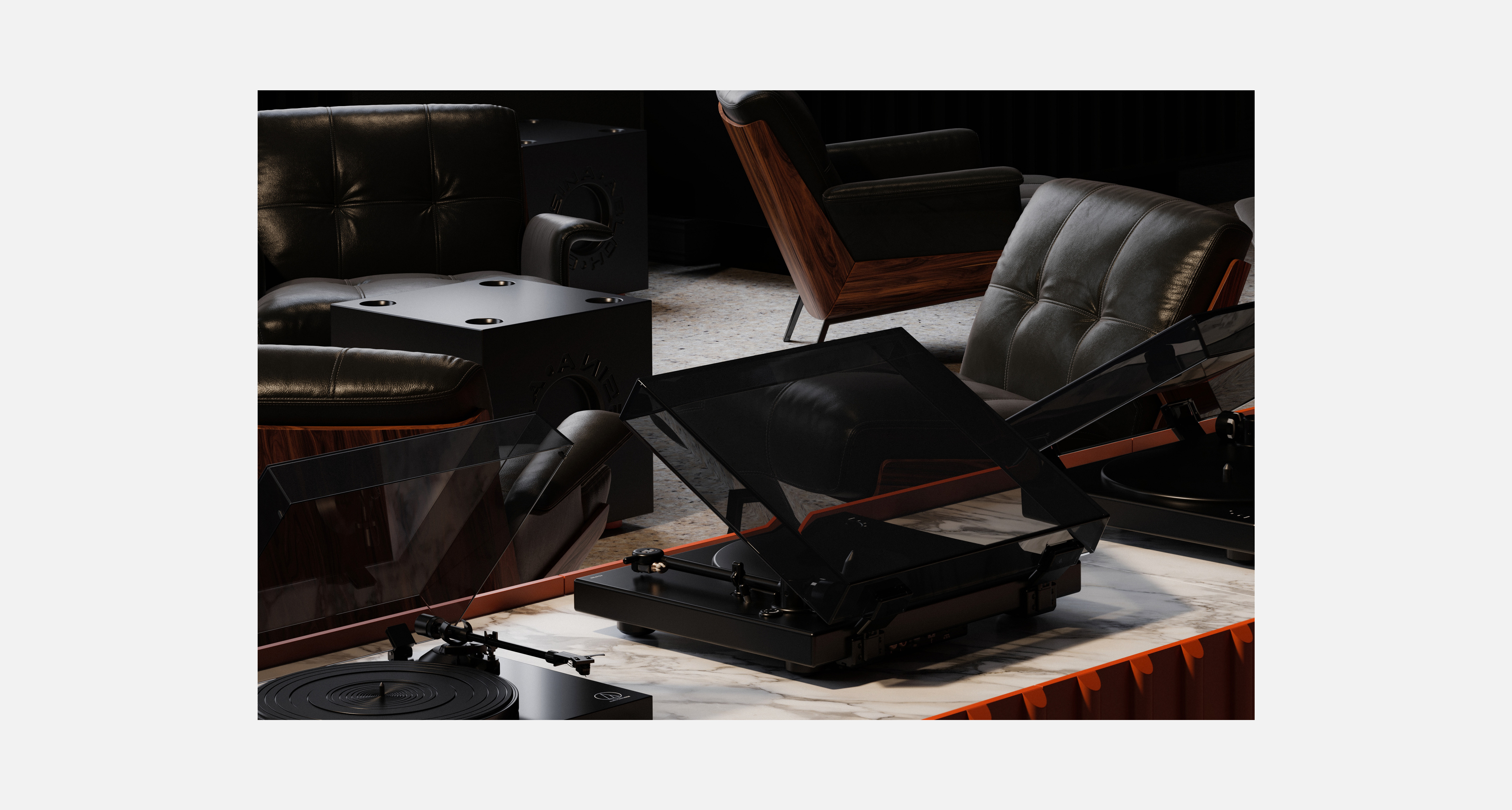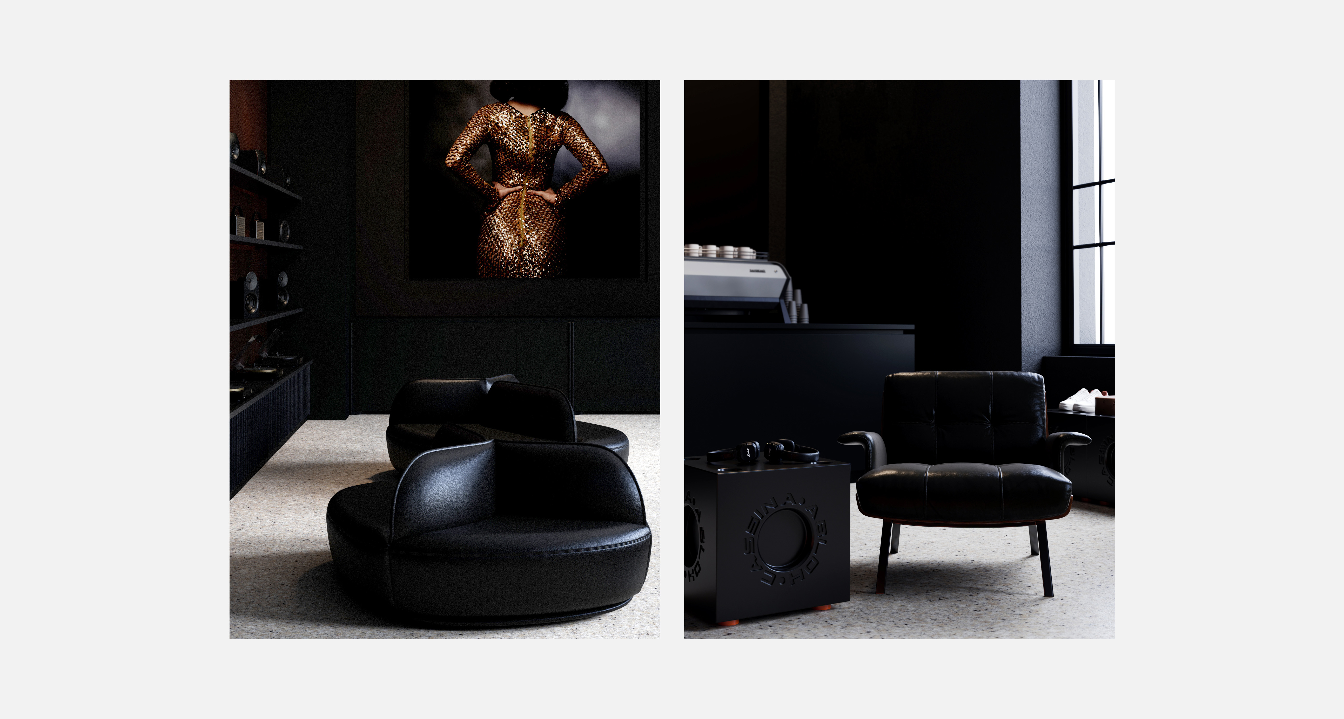 Step into a curated experience where modern design meets timeless atmosphere. This limited-time lifestyle pop-up store brings together high-concept audio retail and sensory immersion in a space defined by moody interiors, raw concrete textures, and mid-century modern furnishings. The layout flows organically, guiding visitors through curated zones featuring thoughtfully selected design objects, and limited-edition pieces. At the heart of the space is a coffee bay, offering artisan brews.